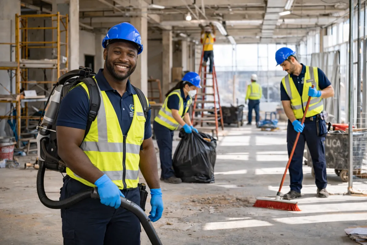 Specialized post-construction cleanup removes debris and dust, making spaces pristine and ready with detailed cleaning of windows, floors, and surfaces.